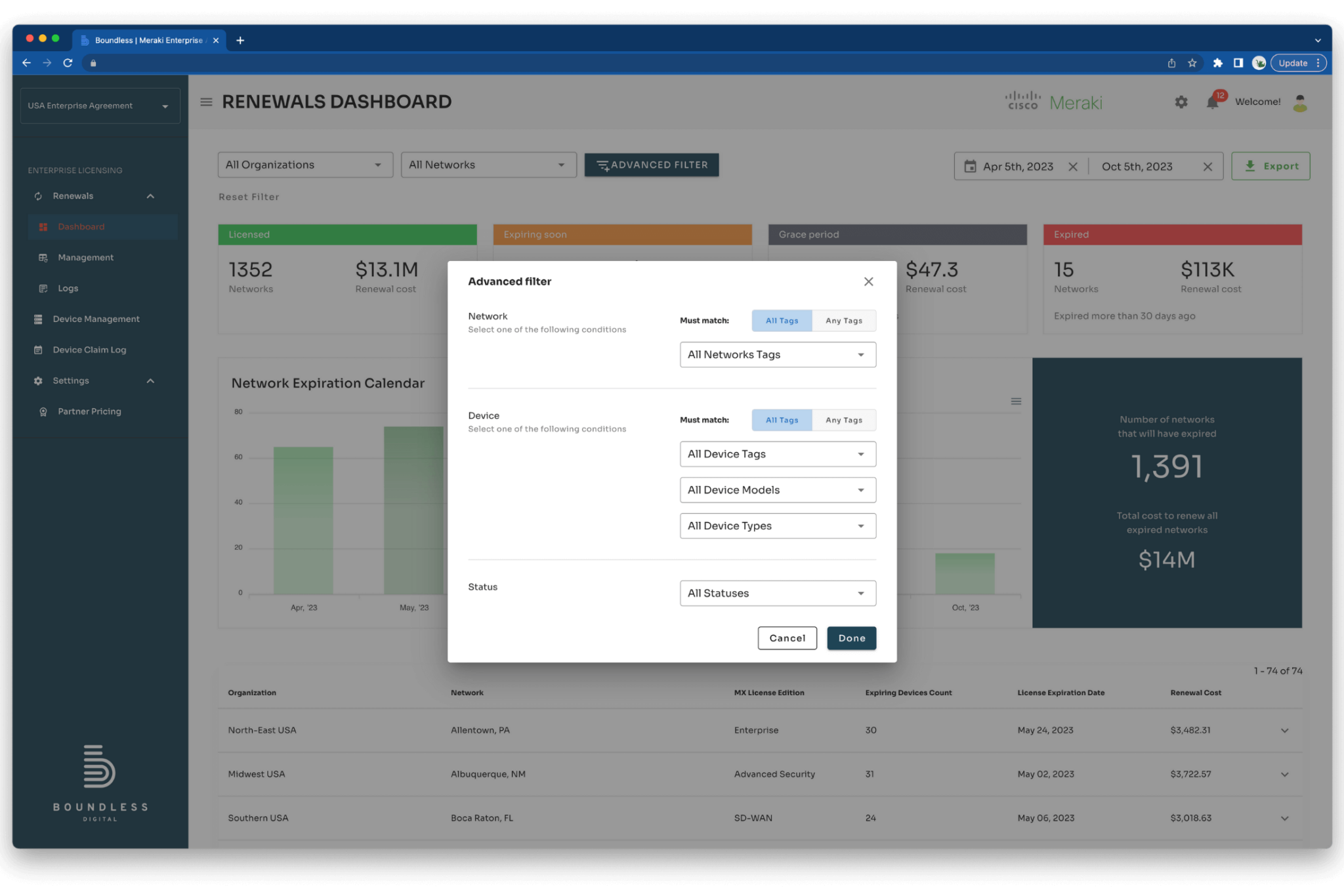 Boundless Smart Track offers granular visibility over resource consumption for each individual device, network or branch, reducing the burden of year-end true-ups.